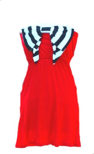 Judith March Sexy Red Tube Dress with Front Black/White Bow, Large