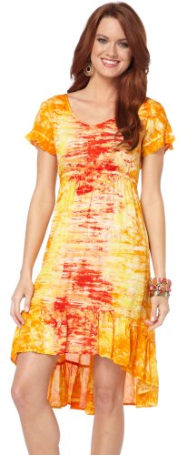 Lola P Tie Dye Ruffle Hi Lo Hemline Dress YELLOW/ORANGE Medium