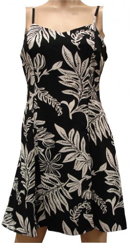 Tiare Hawaiian Dress - Womens Hawaiian Dress - Aloha Dress - Hawaiian Clothing - 100% Rayon Black Medium