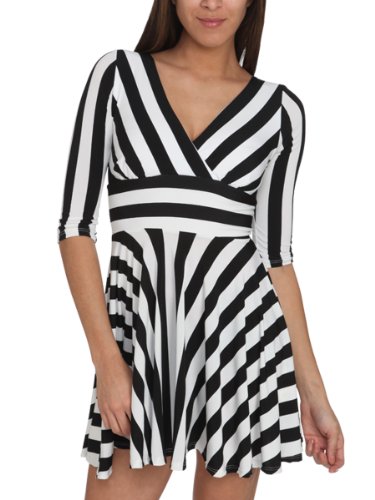 Arden B. Women's Surplice Striped Skater Dress XS Black/white