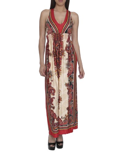 Description: The perfect balance between chic simplicity and cutting edge glam, this vertical printed maxi dress has an eye catching design and longer length that together create a beautifully long and statuesque silhouette. Features vertical stripes along with a paisley print and a deep v-neckline. Smocked empire waist and back features mini thin straps. Dress is lightweight and partially lined.