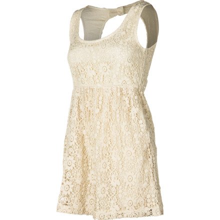 The Bellz Dress is a lace dress with a structured fit that works both day and night with a back cut out detail and snap closure at back neck