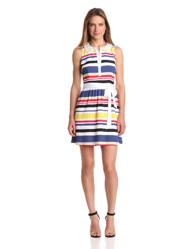 Kensie Women's Mixed Stripes Dress, White Combo, Small