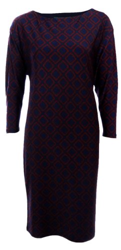 Lauren Ralph Lauren Women's Diamond Print Jersey Shift Dress (6, Navy/Burgundy)