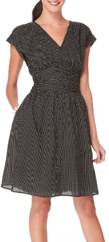 This polka dot dress by Rabbit Rabbit features an exposed zipper at the front, cap sleeves, empire waistline with ruching, smocked at the back of the waist, plus it has pockets. Cotton. Polyester.